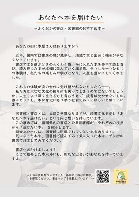 福岡県内の書店と公共図書館とが、それぞれの視点から「届けたい本」 を紹介します。