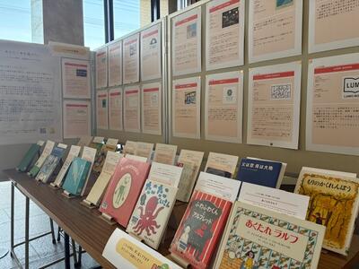 子どもたちの入選作品を掲載したポスターとともに、川や水問題に関連した本も展示しております。