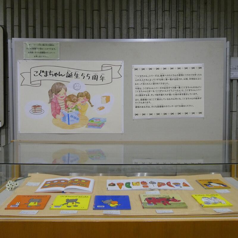 子ども図書館では、こぐまちゃん誕生55周年を記念して、別館ロビーにてガラスケース展示を行っています✨
